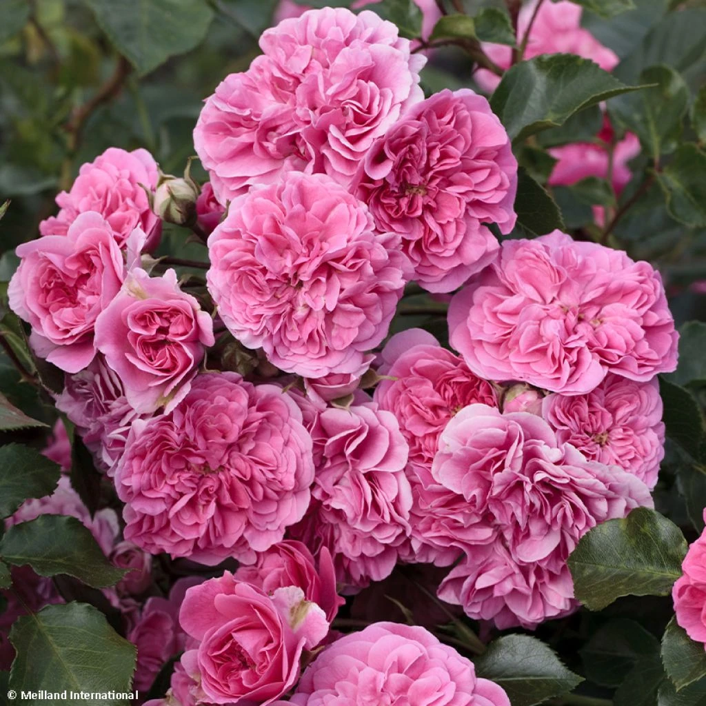Le Rosier Les Quatre Saisons ‘Meifafio’ n’est pas sans évoquer les célèbres concertos pour violons de Vivaldi, avec sa floraison rose d’une grande vivacité, tour à tour enlevée, glorieuse, nostalgique, toujours renouvelée du printemps jusqu’en automne. C’est un rosier paysager doté d’une grande vigueur, très florifère et très résistant aux maladies. Cet intrépide buisson forme un large coussin où se succèdent par vagues successives des centaines de charmantes petites roses romantiques, en pompons, dans un joyeux dégradé de rose. Formant une masse un peu floue, volontiers cascadant, ce rosier fera beaucoup d’effet en massif, au-dessus des murets, en bordure ou en couvre-sol sans demander beaucoup de soins.